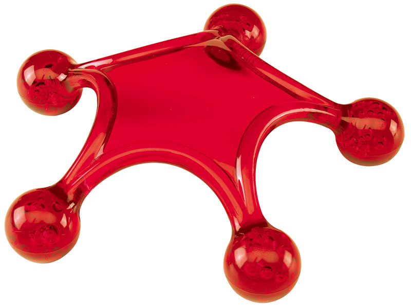 Masajeador «Estrella» de color traslúcido, con 5 puntas masajeadoras en bola y gran espacio para aplicar logo.