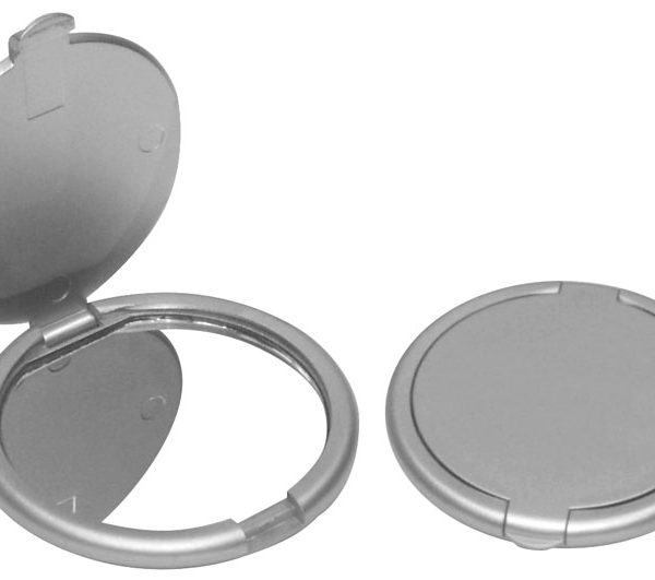Espejo plateado redondo de bolsillo.