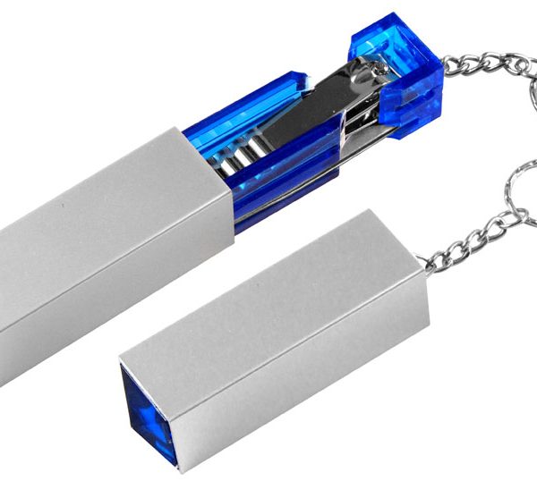 Set de Manicure con Llavero, en tubito rectangular plateado.