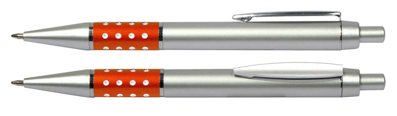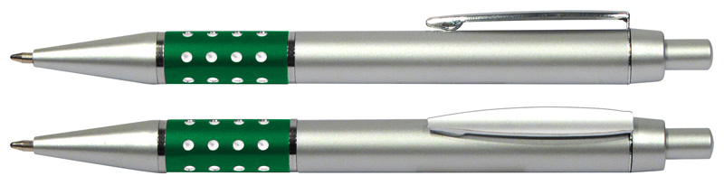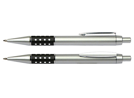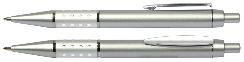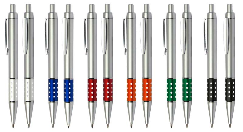 Bolígrafo Plástico Metalizado modelo «Alum», con anillo metálico con orificios. Escritura azul.